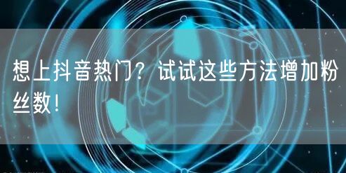 想要上抖音热门,增加粉丝数并非易事。需要持续创作优质内容,与观众互动沟通,定期更新并关注热点话题。同时,要多渠道推广,提高账号的曝光率。希望以上方法能帮助你在抖音上获得更多的关注和认可!
